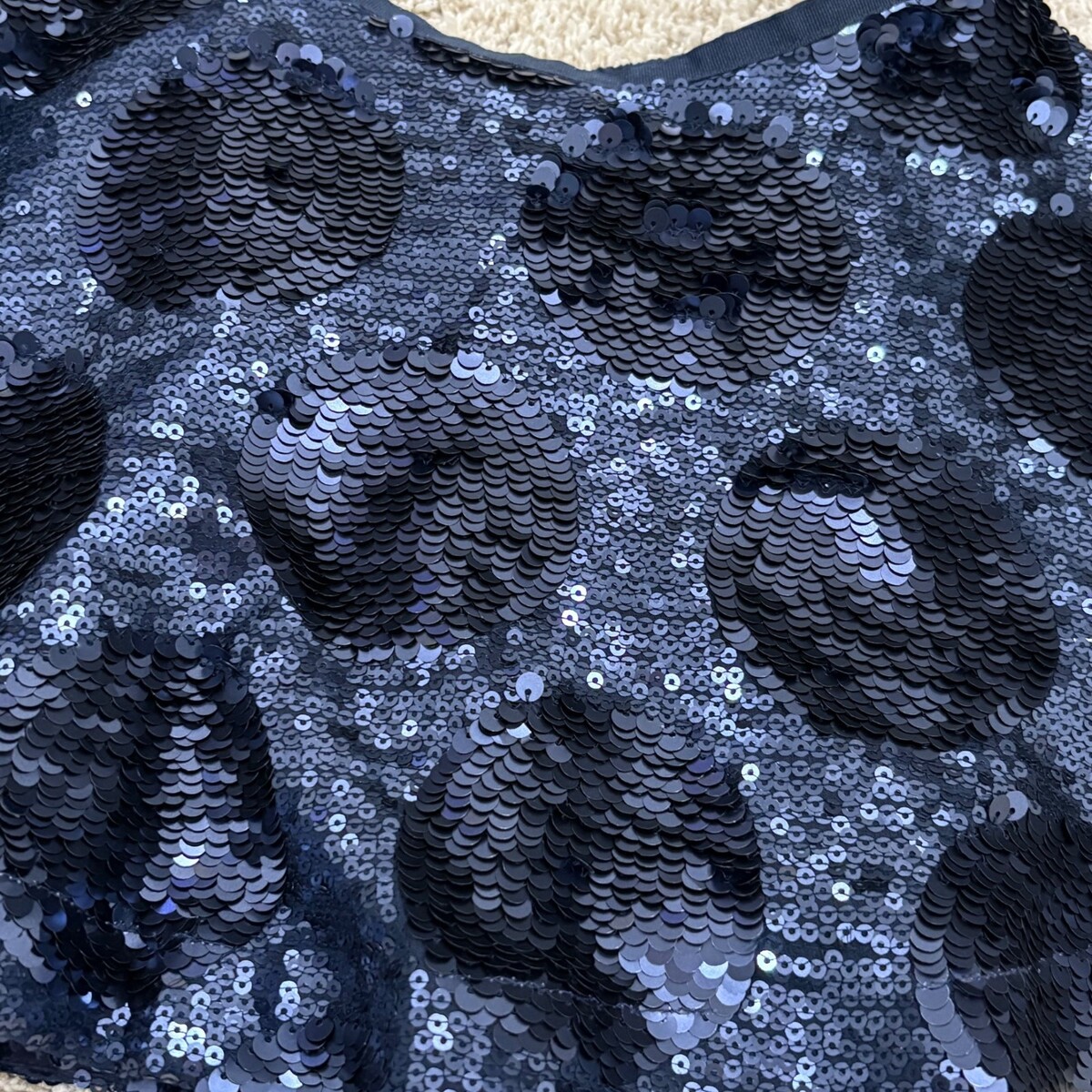 Once upon a time, a little girl twirled in a magical skirt, shimmering with navy sequins and playful polka dots. It was her favorite treasure.