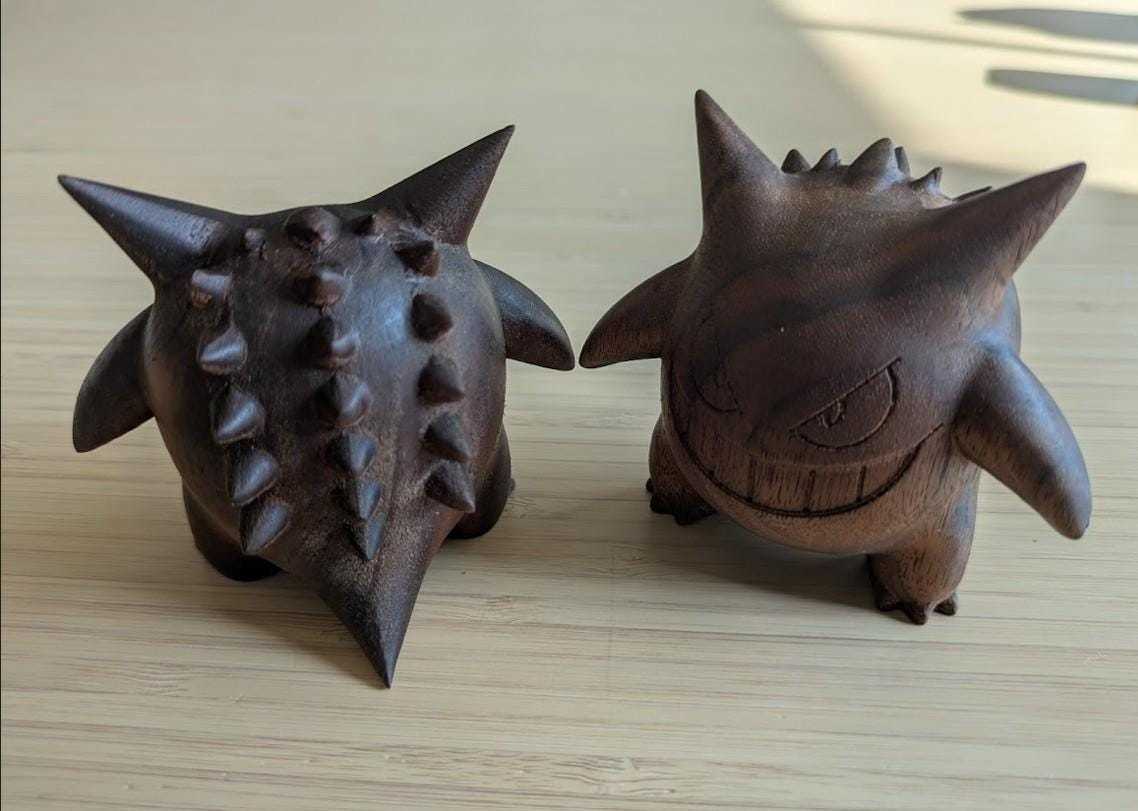 - Mini Gengar Figurine Handmade Wooden Gengar Desk Display Piece Pokémon Fans Gift