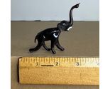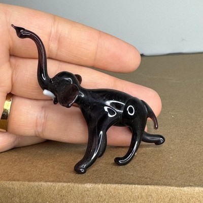 Keywords: glass elephant, miniature elephant, small elephant figurine, black glass animal, animal figurine, collectible elephant, desk decor, shelf decor, home decor, glass art, elephant trunk up, tiny elephant, handmade glass, unique gift, animal lover gift