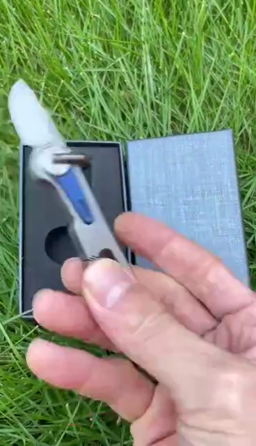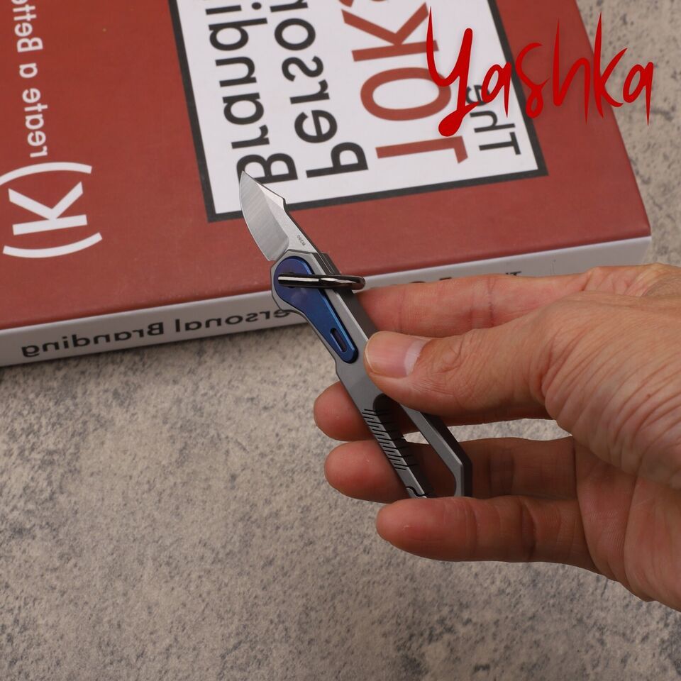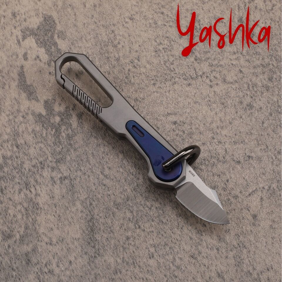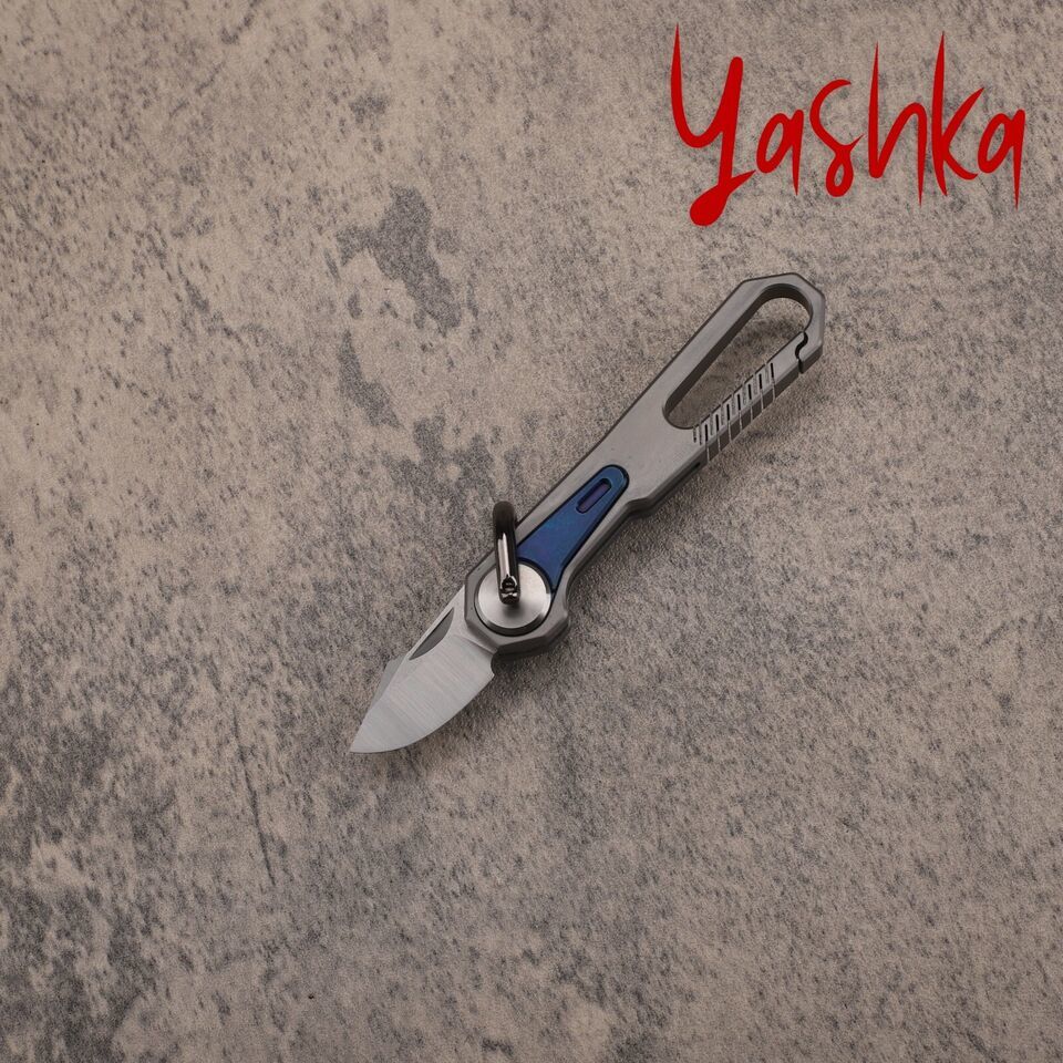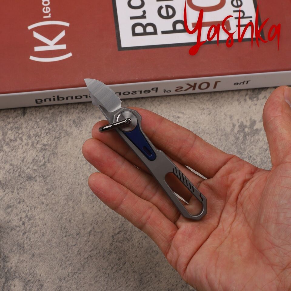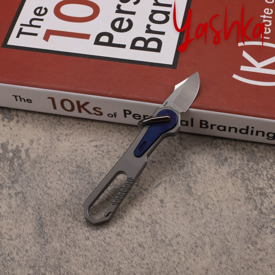 - Mini Hunting Knife M390 Folding Blade Titanium Keychain Pendant Blue Silver Tool