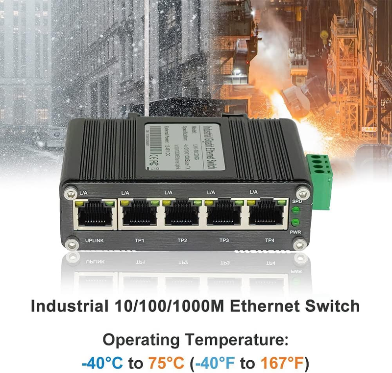 Industrial Grade Quality ? The Hardened Mini Gigabit Switch use industrial grade components and aluminum housing, it can work at wide range temperature -40C to 75C (-40F to 167F). You can use it in outdoor harsh environment.