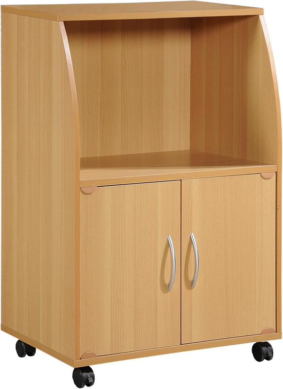 Mini Microwave Cart with Two Doors and Shelf for Storage, Beech