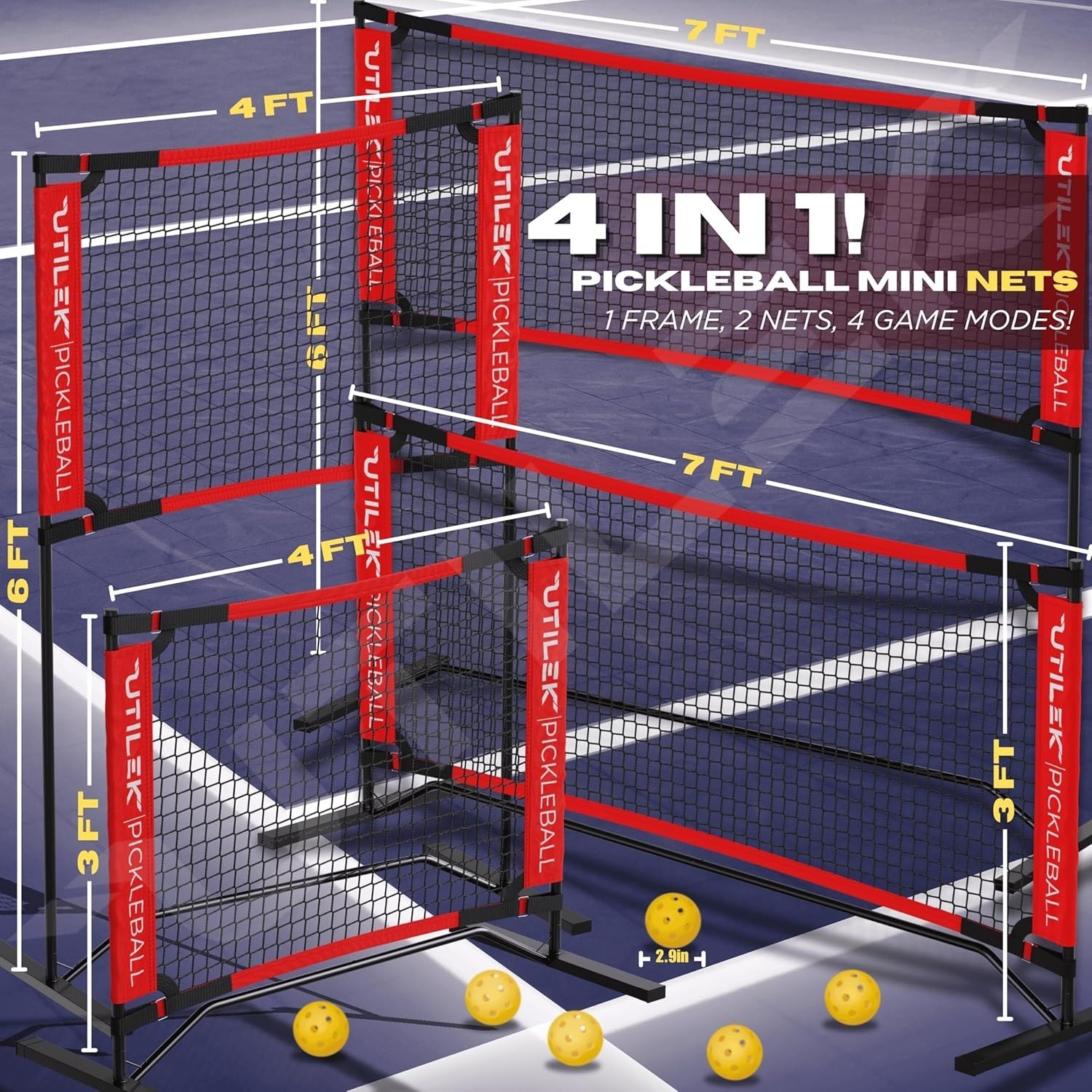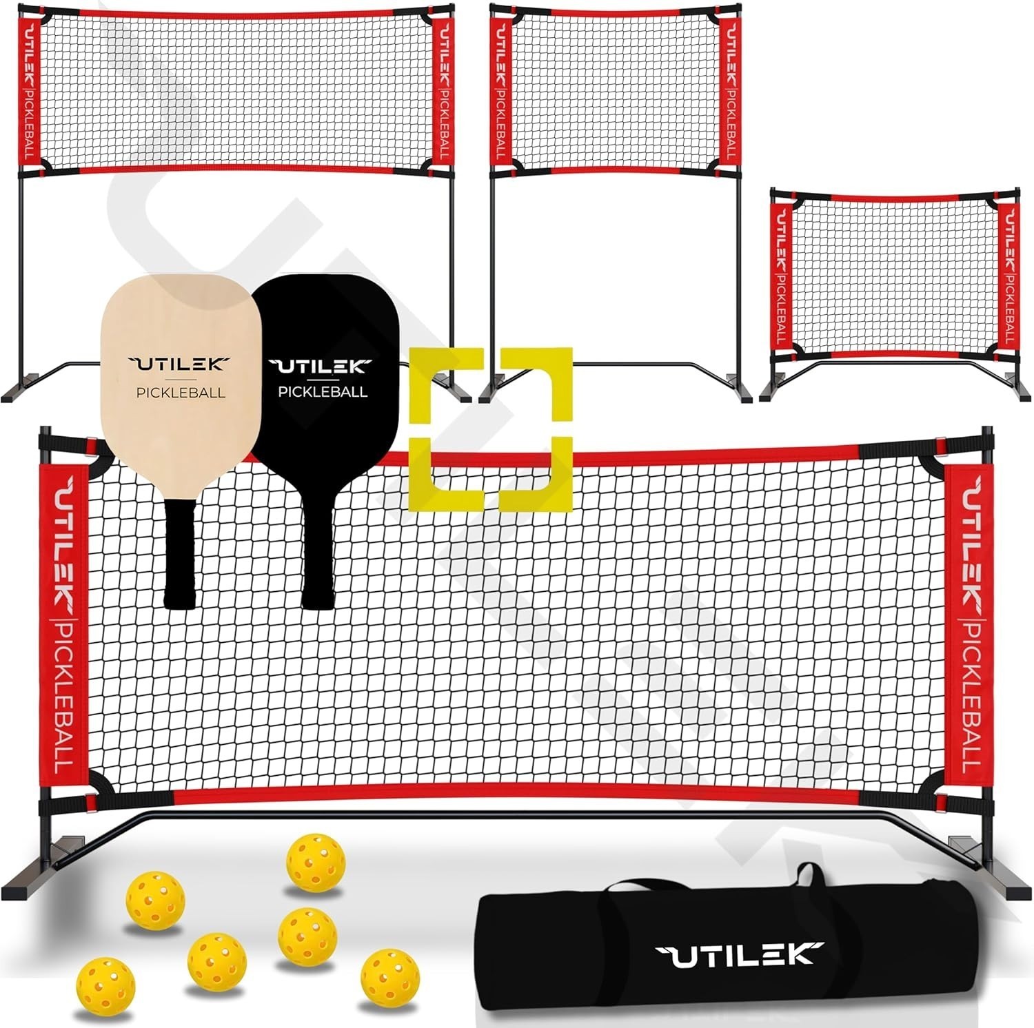 - Mini Pickleball Dink Net, Small Size Set 4ft + 7ft, Paddles, Court Markers, 6...