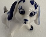 - Miniature Blue & White Ceramic China Dog Figurine Puppy Happy Eye Lash Ink Tiny