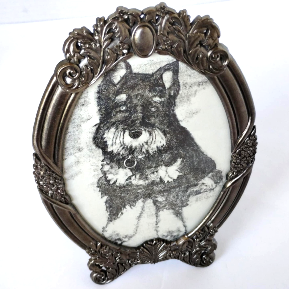 - Miniature Schnauzer Artist Signed Charcoal & Pencil Framed Original Art Drawing