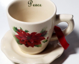 - Miniature Teacup/Saucer Christmas Ornament Poinsettia Peace Ceramic Doll House