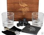 Minnesota Vikings Drinkware Set Glasses Wood Box Coasters Cooling Cubes NFL