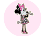 • Minnie Mouse featured in as fashionable grey and pink polkadot outfit.
