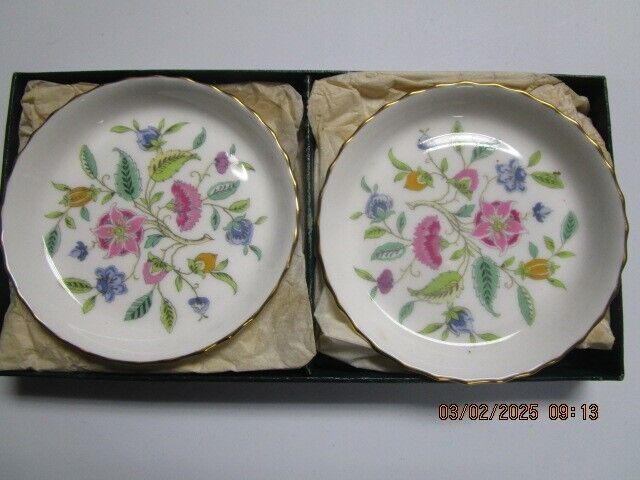 MINTON ENGLAND PAIR OF FLORAL DISHES 3.5" [KRINGLE-R16]