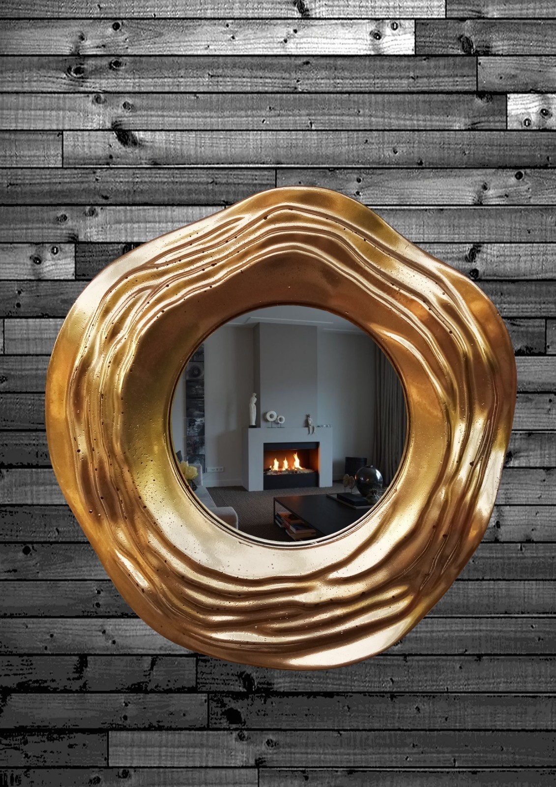 mirror. This mirror in an irregularly shaped frame is made of epoxy
