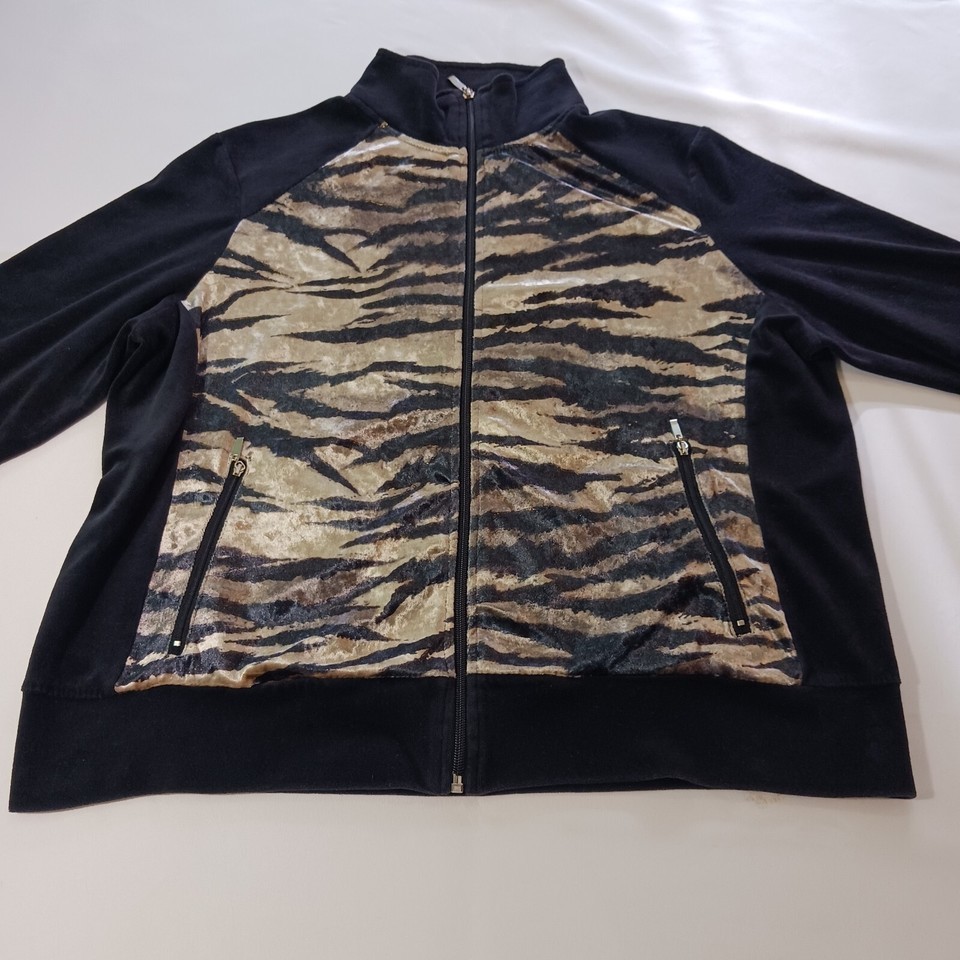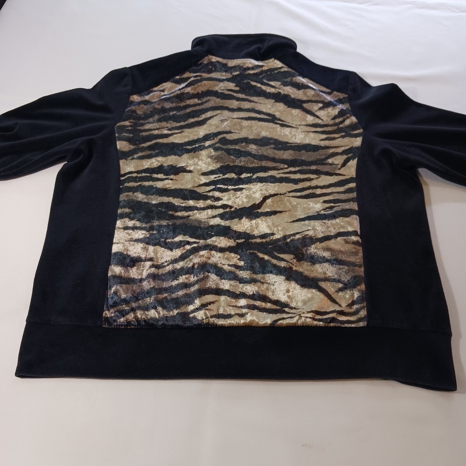 - Mirror Image Jacket Womens Size XL Full Zip Lightweight Black Velour Zebra Print