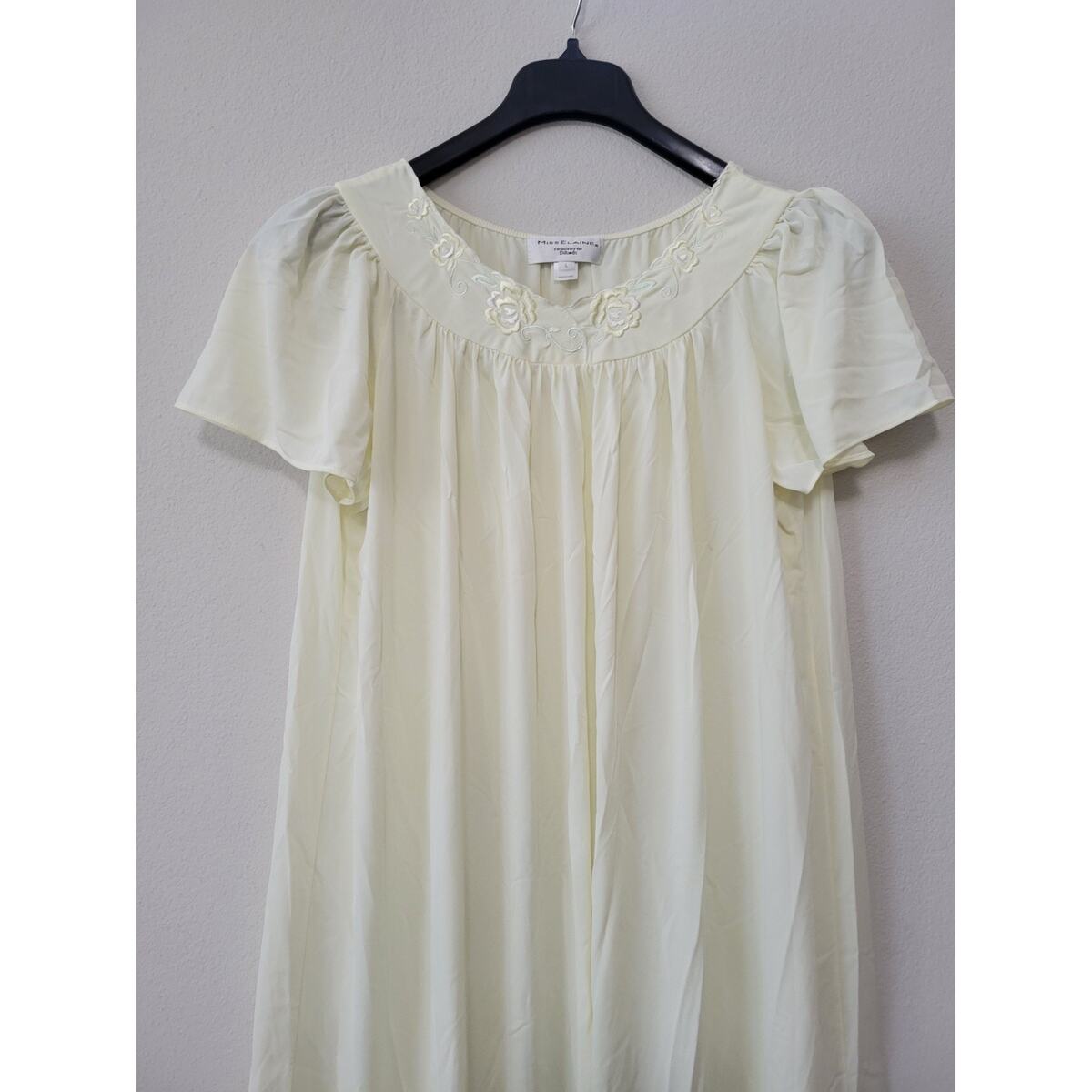- Miss Elaine Nightgown Size LARGE Yellow Floral Embroider Nylon Sleep