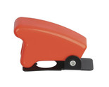 Military-style missile switch cover featuring a red, heavy-duty hinged, spring-return protective cover. The cover fits onto heavy duty toggle switches with a 12mm mounting hole.