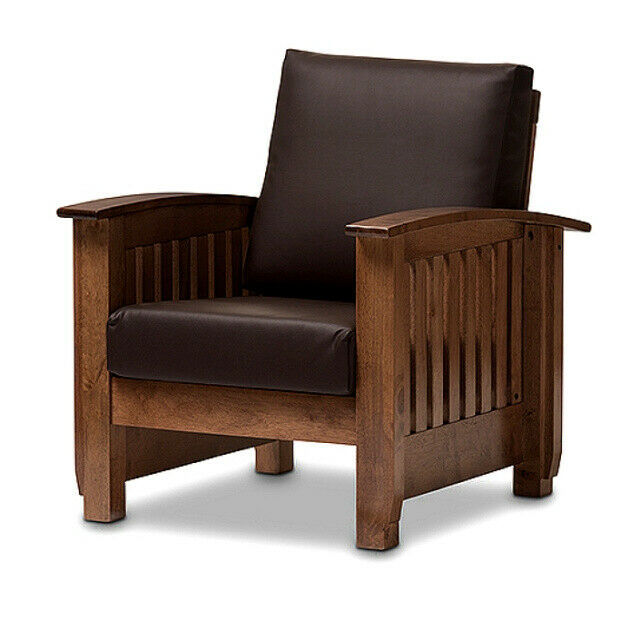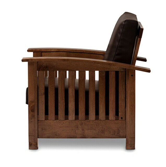 Mission Craftsman Shaker Leather-Like Walnut Morris Chair - New!