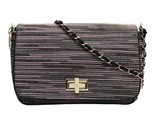 A super cute bag made from pink striped jacquard fabric with metallic shine and long thin crossbody chain strap, flap top with turn lock and lovely bag charm with M Missoni logo. The interior features striped patterned fabric , logo and zipper pocket. A small bag for day and night !!