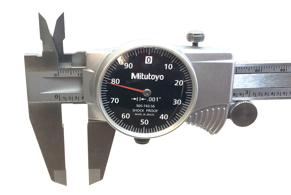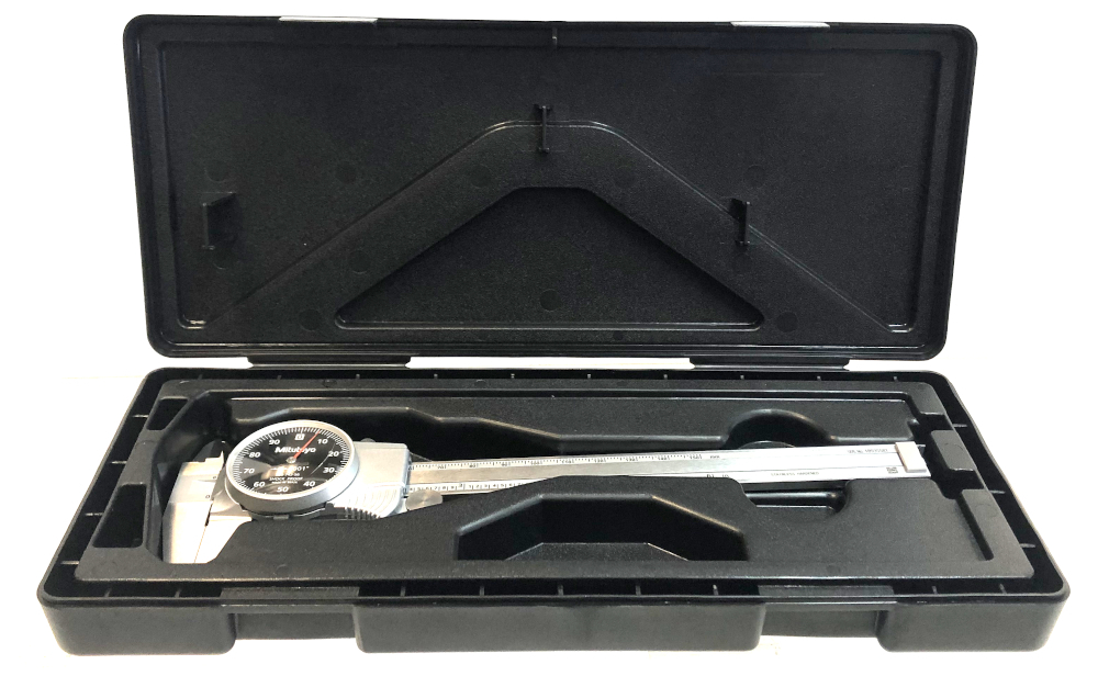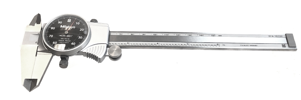 Category: GaugesType: Measuring toolBrand: MitutoyoModel number: 505-742-56Size: FullColor: SilverModel name: BatteryPower source: yesVoltage: yesNumber of pieces: noCondition:New (Open Box)Notes:Mitutoyo 505-742-56 Dial Caliper with Black Dial Face, 0-6" Range .001"