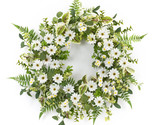 Brighten up your entryway with this stunning Mixed Fern and Daisy Floral Wreath. Crafted with a blend of lush, variegated greenery and vibrant daisy flowers, this wreath offers a welcoming touch to any space. Made with durable polyethylene flowers and a high-quality twig base, it s designed to last for seasons to come, whether displayed indoors or on a covered outdoor porch. At 22.5" in diameter, this wreath is the perfect size to add color and charm to your front door or any room in your home.