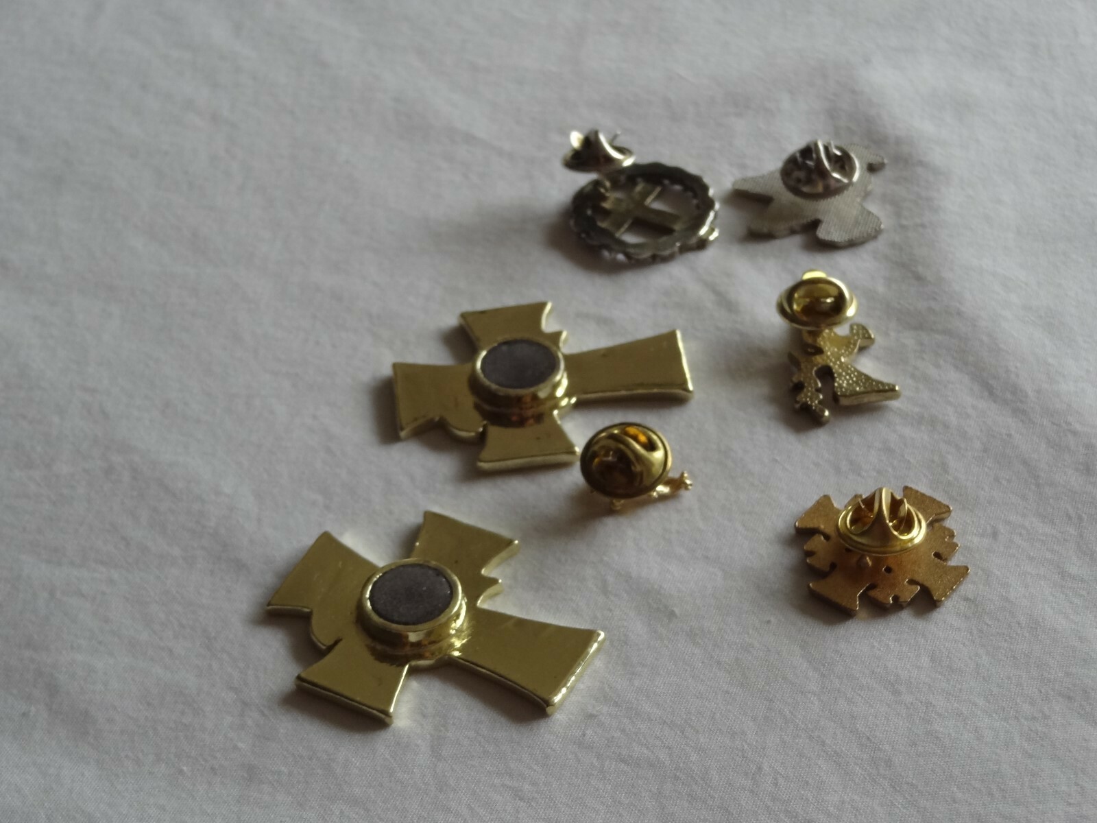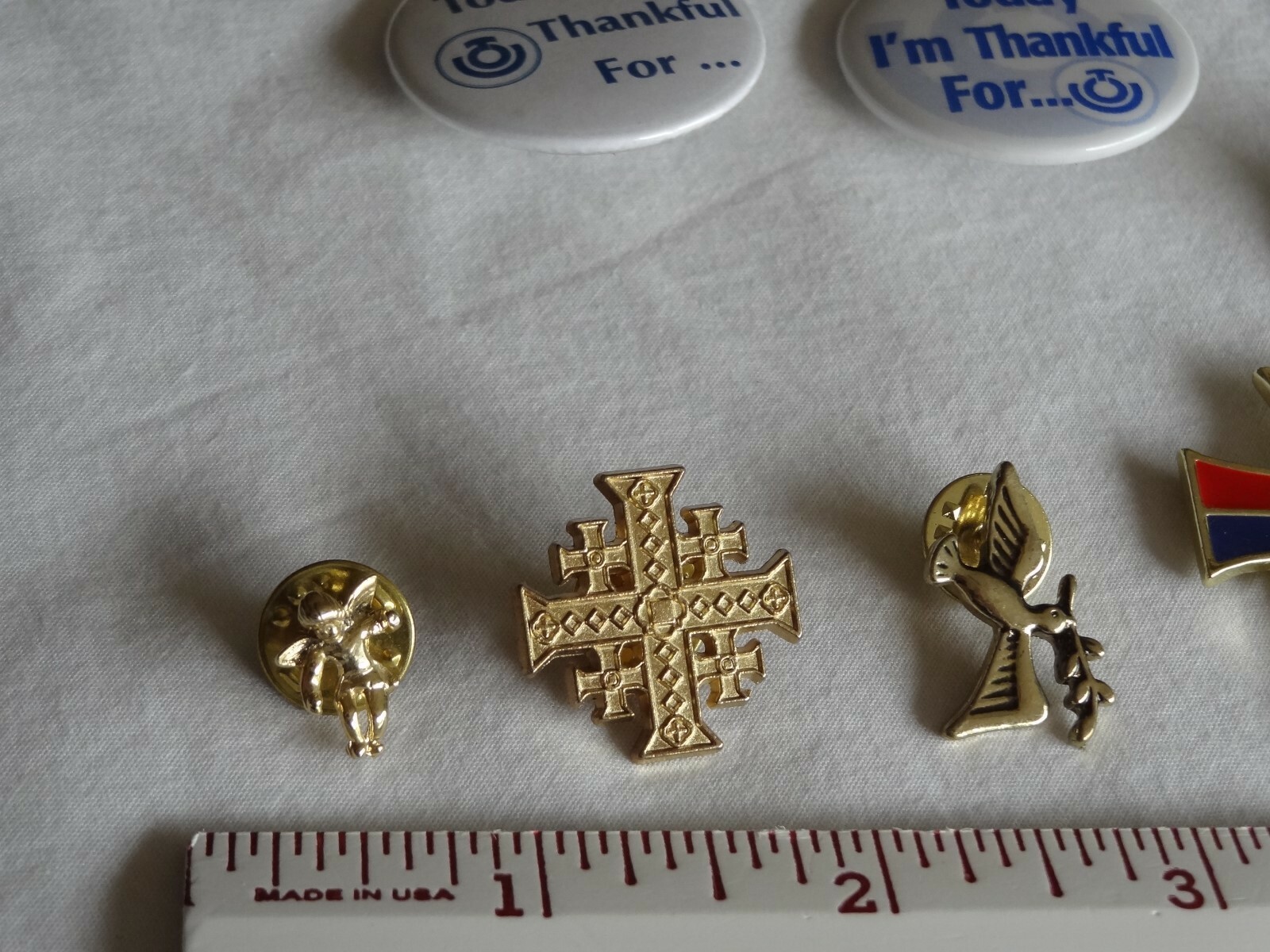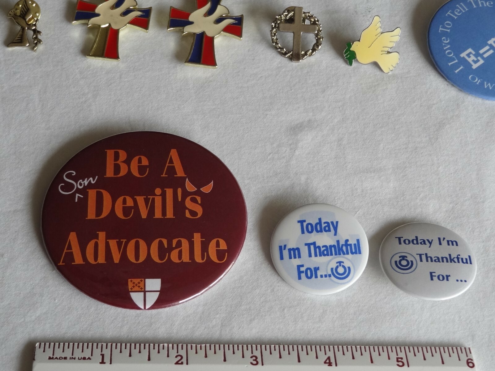 - Mixed Lot of Religious Pins Buttons Magnets Cross Dove Bishop Angel E=mc2 Stork