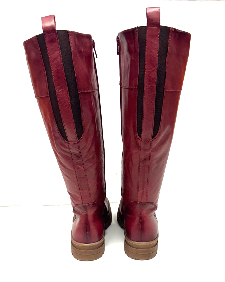 - MIZ MOOZ SOFT LEATHER TALL BOOTS SIDE ZIP BACK GORE 37EU WINE / 7US NEW # Z-81