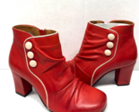 - MIZ MOOZ SOFT RUCHED LEATHER HEELED BOOTIE SIDE ZIP RED 37EU / 7US NEW Z-65