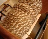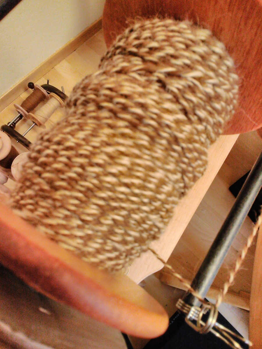 A three color alpaca yarn. Light brown, medium brown, and 'lightly toasted caramel brown' make for an intresting swirl. 11-12 WPI. Sold by the yard. This is custom job, so there's a turnaround for shipping it.