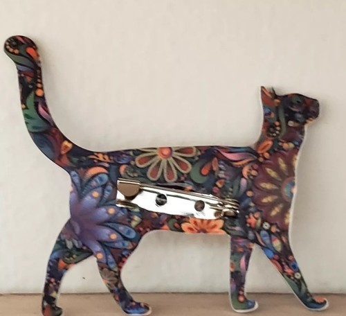 - Mod Style Walking Cat Pin Cat Lovers Floral Pin, New in Package