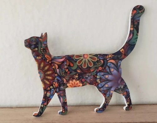 Cat Lovers Floral Pin measures approximately 2.25" wide (at widest point) 2" Tall (at tallest point)