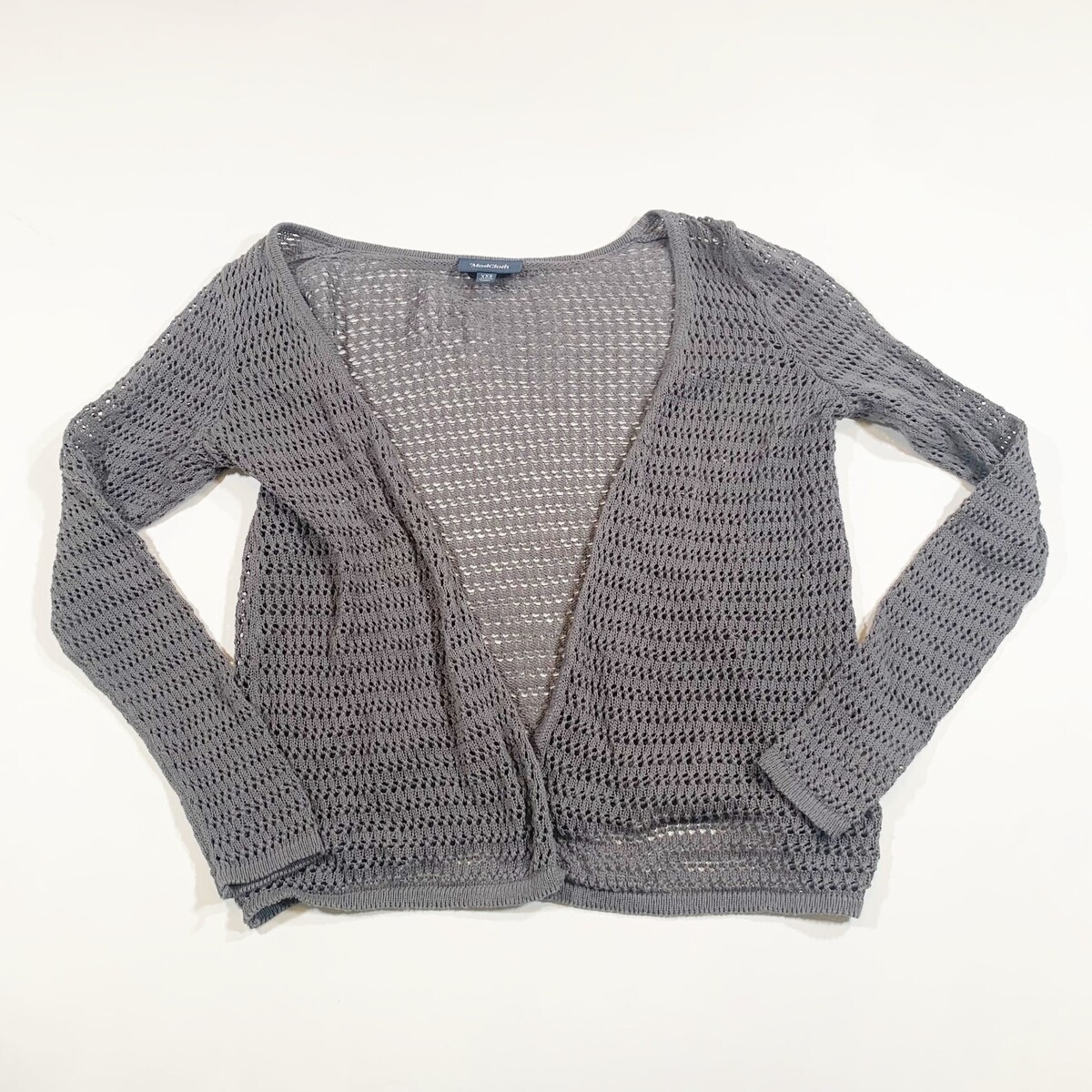 ModCloth Womens Sweater Gray XXS (2XS) Long Sleeve Open Front Cardigan Open Knit