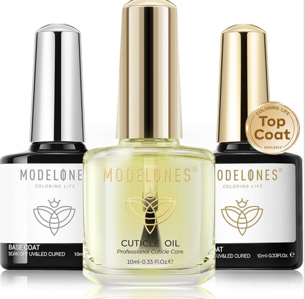 - Modelones Nail kit 3pc set Gel Top Coat & Base with Cuticle Oil Set,10 ml Cuticl