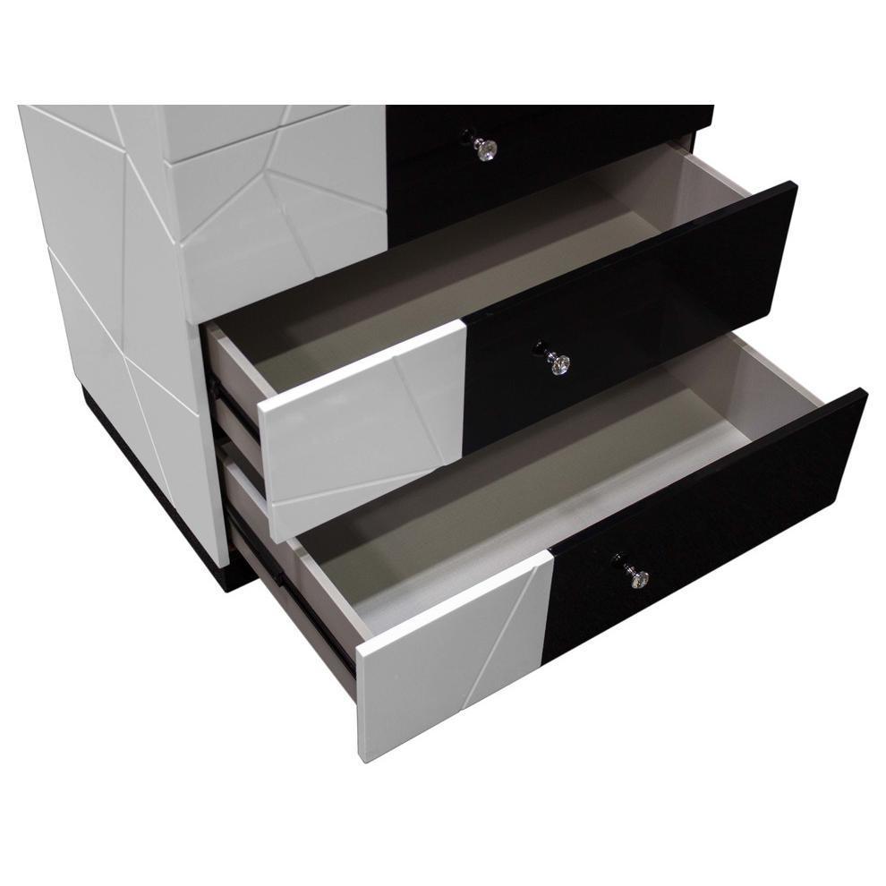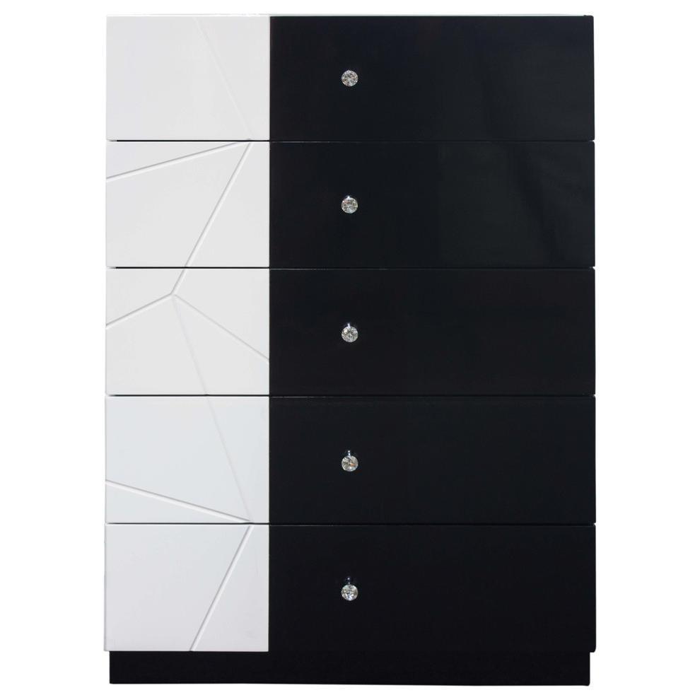 - Modern 5-Drawer Chest: Black/White Lacquer Wood Storage Unit