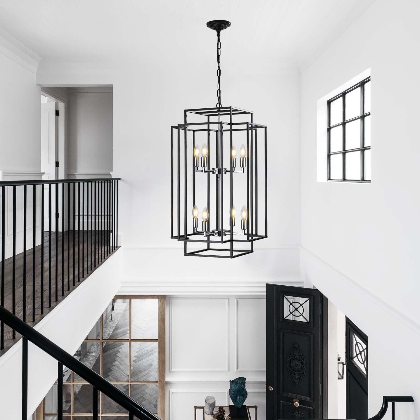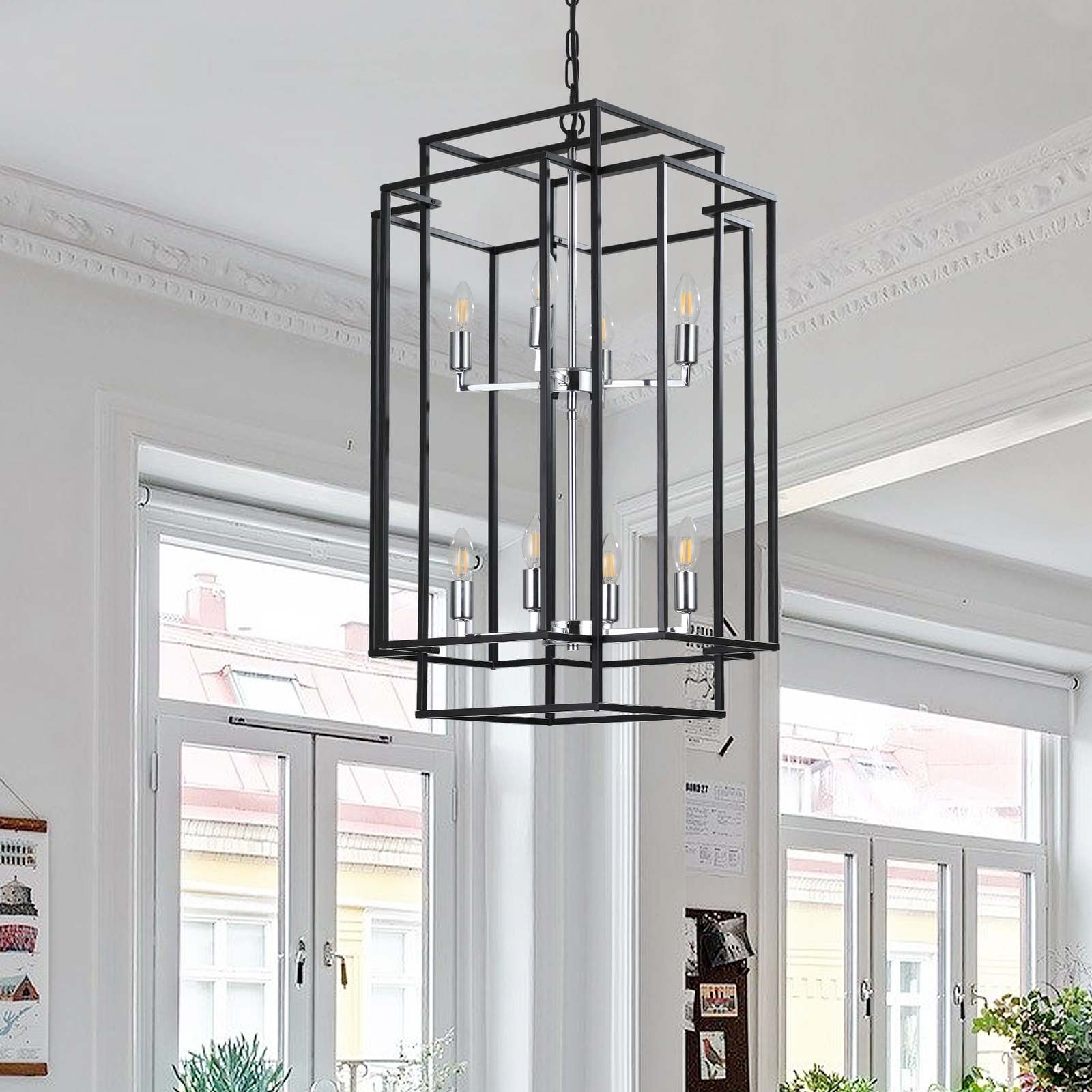 Perfect Design Style: This foyer chandelier has a black geometric frame and a chromium color central lamp base. It is the perfect complement to the lamps in your home. This kitchen island chandelier is the perfect choice for you! More and more customers are picking this fixture for better comfort and to meet the new popular styles. It is suitable for all decoration styles. this foyer chandeliers for high ceilings No assembly required.Adjustable Boom Multi-Scene Applications: The foyer lighting fixtures length of the boom is 60 inches/150 cm. Consists of removable metal rods that allow you to easily adjust the height. foyer chandelier for: living room, room, Hallway, dining room, kitchen island, farmhouse, foyer.