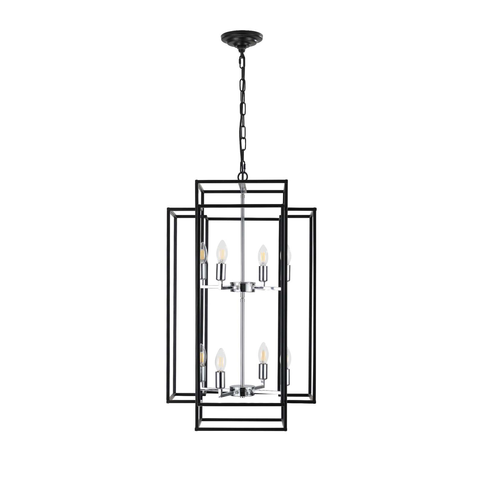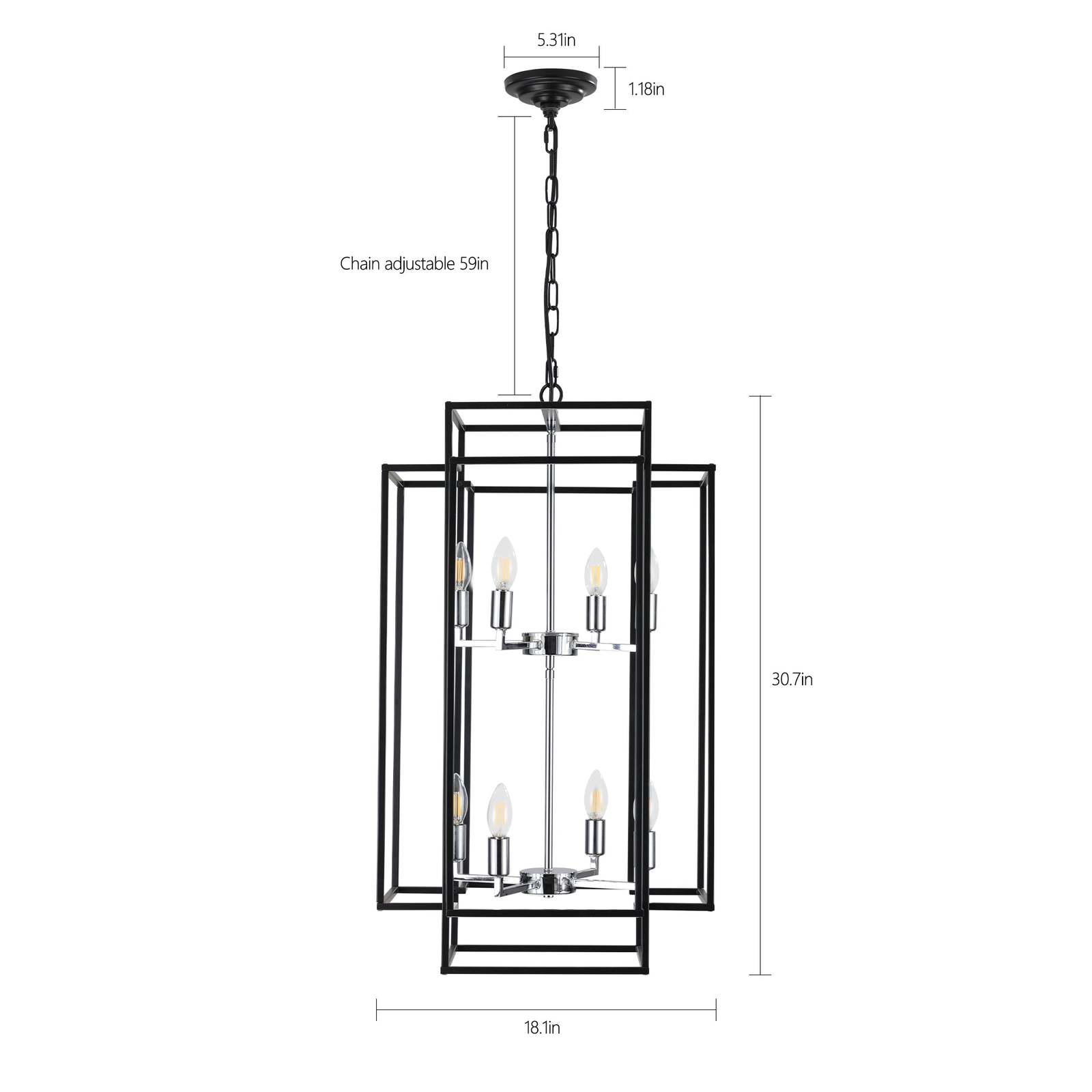 18' Modern 8-Light Black Chrome Geometric Pendant Chandelier, Industrial Metal Frame