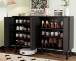 - Modern Black Fluted Shoe Cabinet Sideboard, 4-Door Storage Living Room