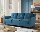 - Modern Blue Microfiber 3-Seater Sofa With Button Tufting