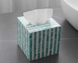 Product description: Transform your space with this stunning modern tissue box holder, meticulously handcrafted with beautiful blue and pearl white shell mosaic tiles. Measuring 5.51 inches in all dimensions, this square tissue holder perfectly accommodates standard tissue cubes while adding a touch of sophisticated style to any room. The durable resin construction ensures longevity, while the luxurious shell detailing creates a captivating visual texture that elevates your decor. Perfect for bathrooms, bedrooms, living rooms, or office spaces, this versatile tissue holder combines everyday functionality with artistic design. The smooth polished surface is easy to clean, and the accessible base makes refilling simple. Add this distinctive decorative accent to your home or give it as a thoughtful gift for someone who appreciates unique, handcrafted home accessories.