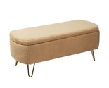 - Modern Camel Storage Ottoman Bench: Gold Legs, Faux Fur, End Bed