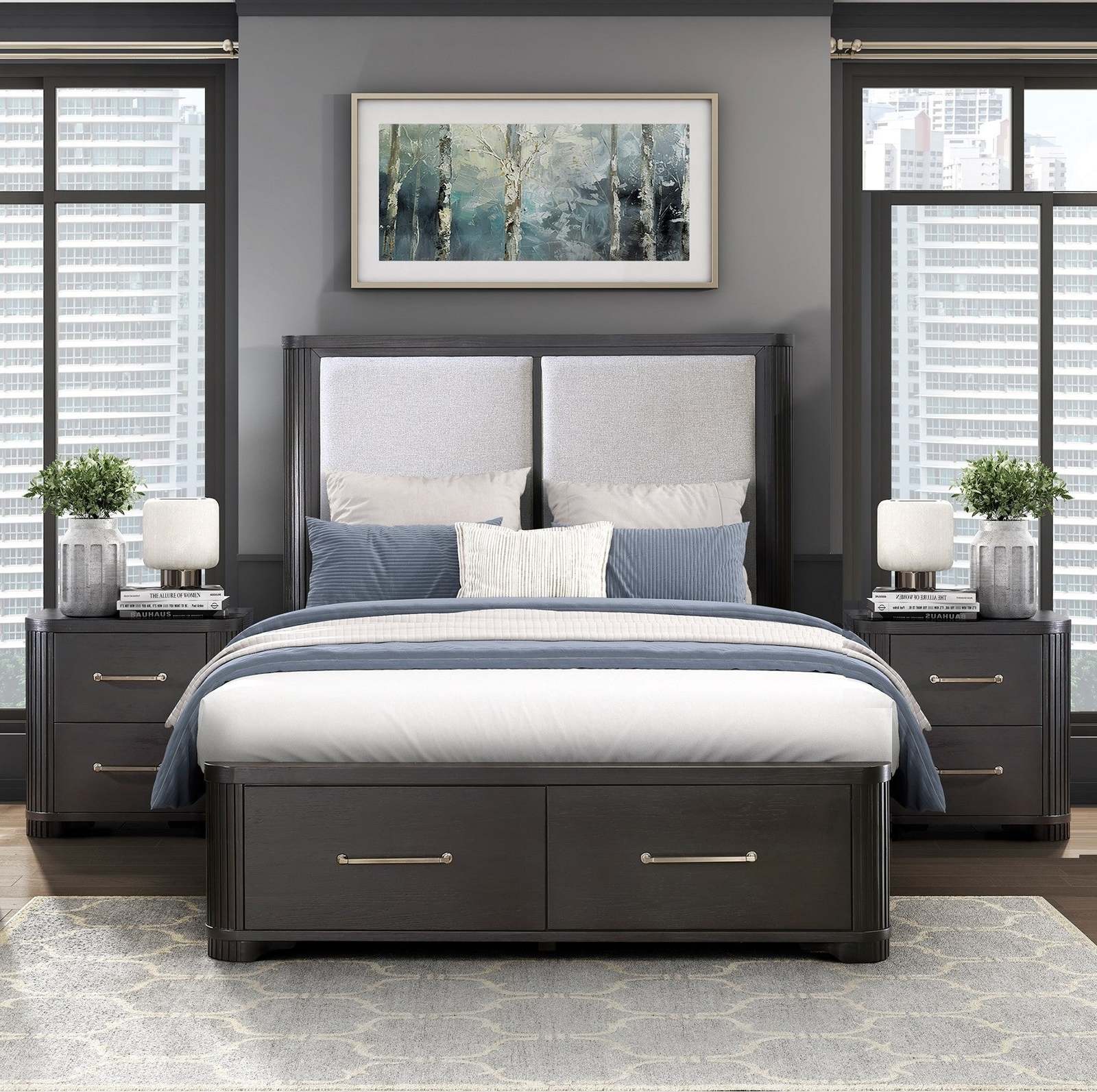 Modern Charcoal Nightstand - 2-Drawer Dovetail Bedside Table