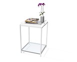 Modern Classic Metal End Table with White Removable Tray Removable/Reversible Tray Multi Function Use Chrome Plated Steel Frame Tempered Glass on top and bottom shelves Tray is not intended for direct contact with food Will provide years of enjoyment