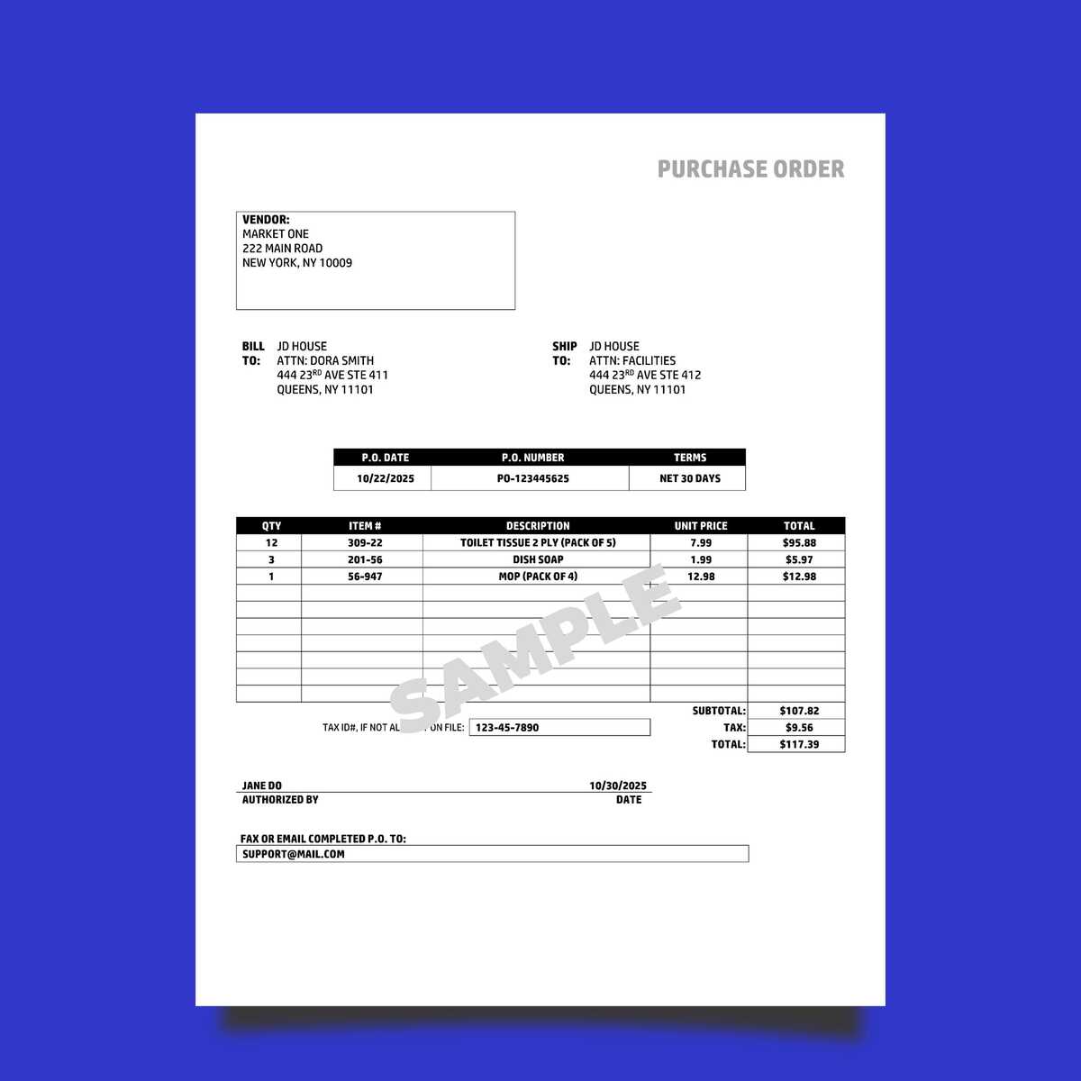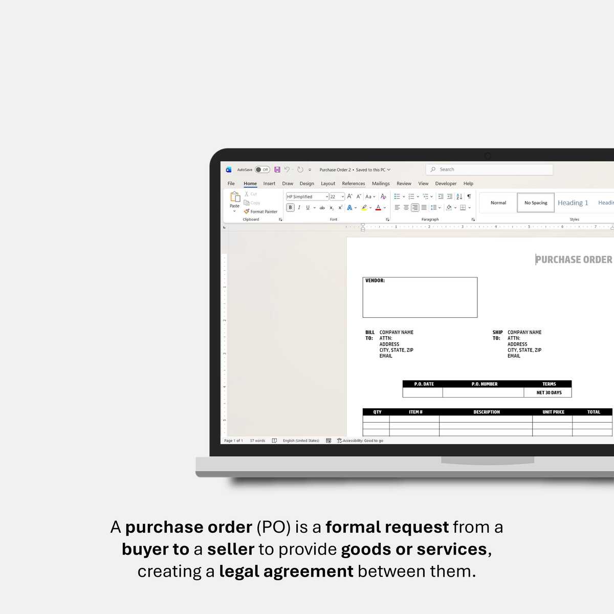 Perfect for any company that regularly buys materials, parts, or products for resale. Create consistent purchase orders for every supplier without starting from scratch each time. Just edit, save, and send — it’s that simple!