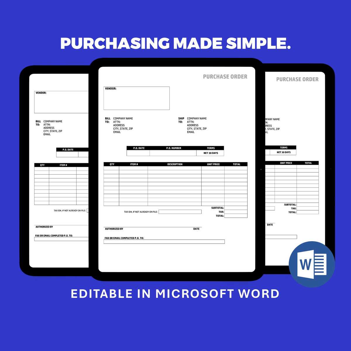 - Modern Editable Purchase Order Template (Microsoft Word)