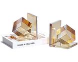 Product description: Transform your shelves with the Interoknack Modern Geometric Crystal Bookend, a stunning piece of functional art for your home or office. This contemporary amber acrylic cube creates a striking visual statement while providing practical support for your books and collectibles. Each single bookend measures 4.7 x 4.3 x 4.7 inches and features a transparent design that catches light beautifully, adding dimension and sophistication to any space. The premium clear amber material creates a warm, inviting glow while the geometric shape offers a modern, architectural element to your decor. Perfect for minimalist interiors, executive offices, or as a distinctive gift for design enthusiasts. The durable construction ensures your books remain upright while the artistic form elevates your entire display. Combine multiple bookends for a customized arrangement that's both practical and visually impressive. Books not included with this singular statement piece that balances form and function with elegant simplicity.