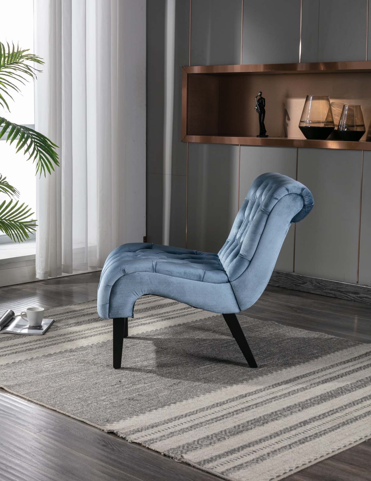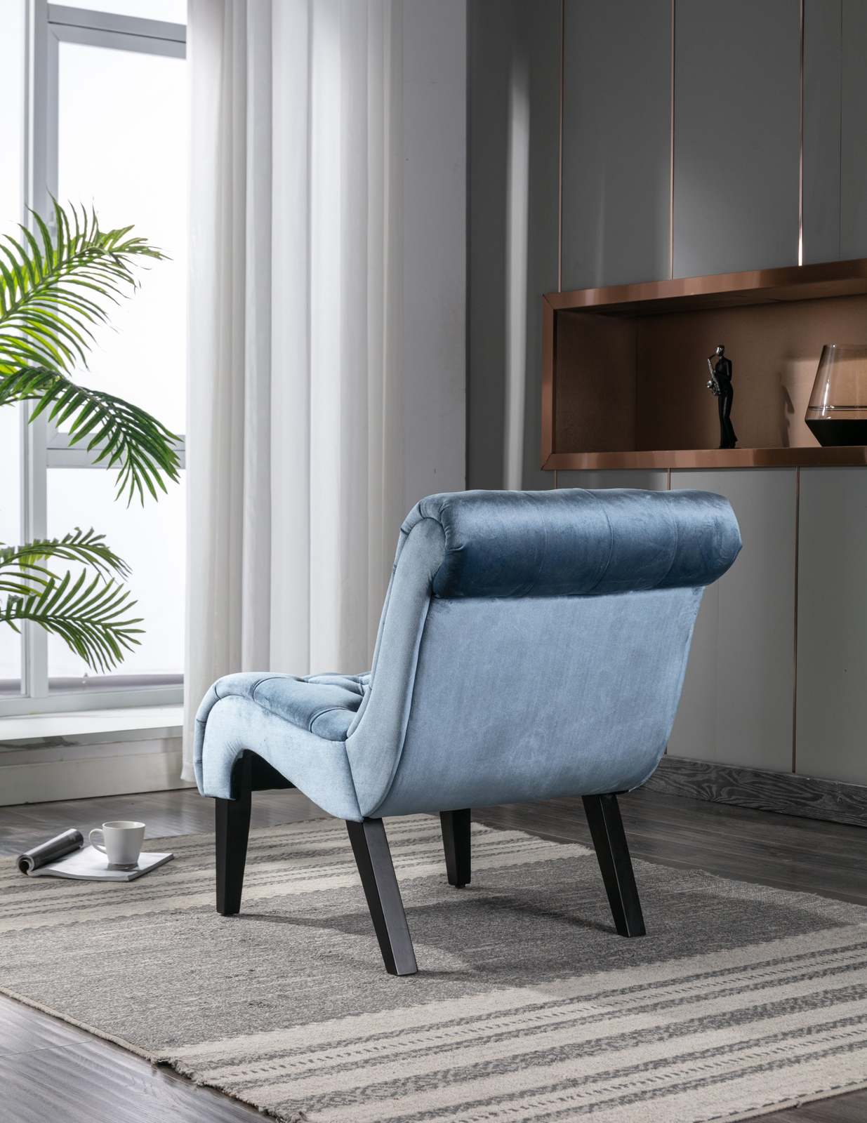 - Modern Light Blue Velvet Armless Accent Chair with Wooden Legs