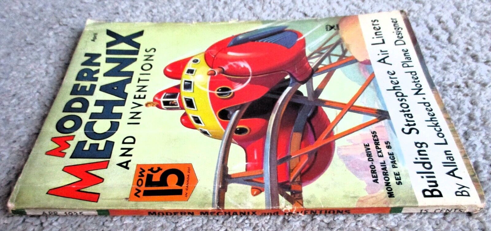 MODERN MECHANIX AND INVENTIONS V. 13, #6 (Apr. 1935) Aero-Drive Monorail Express