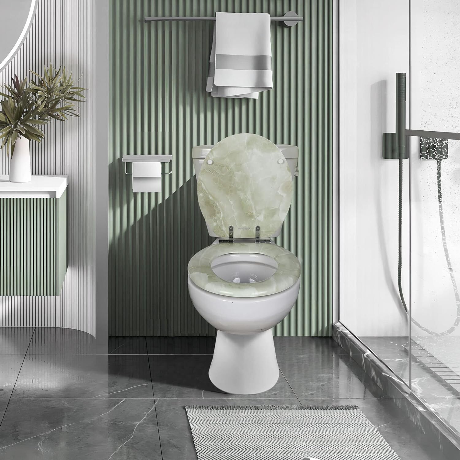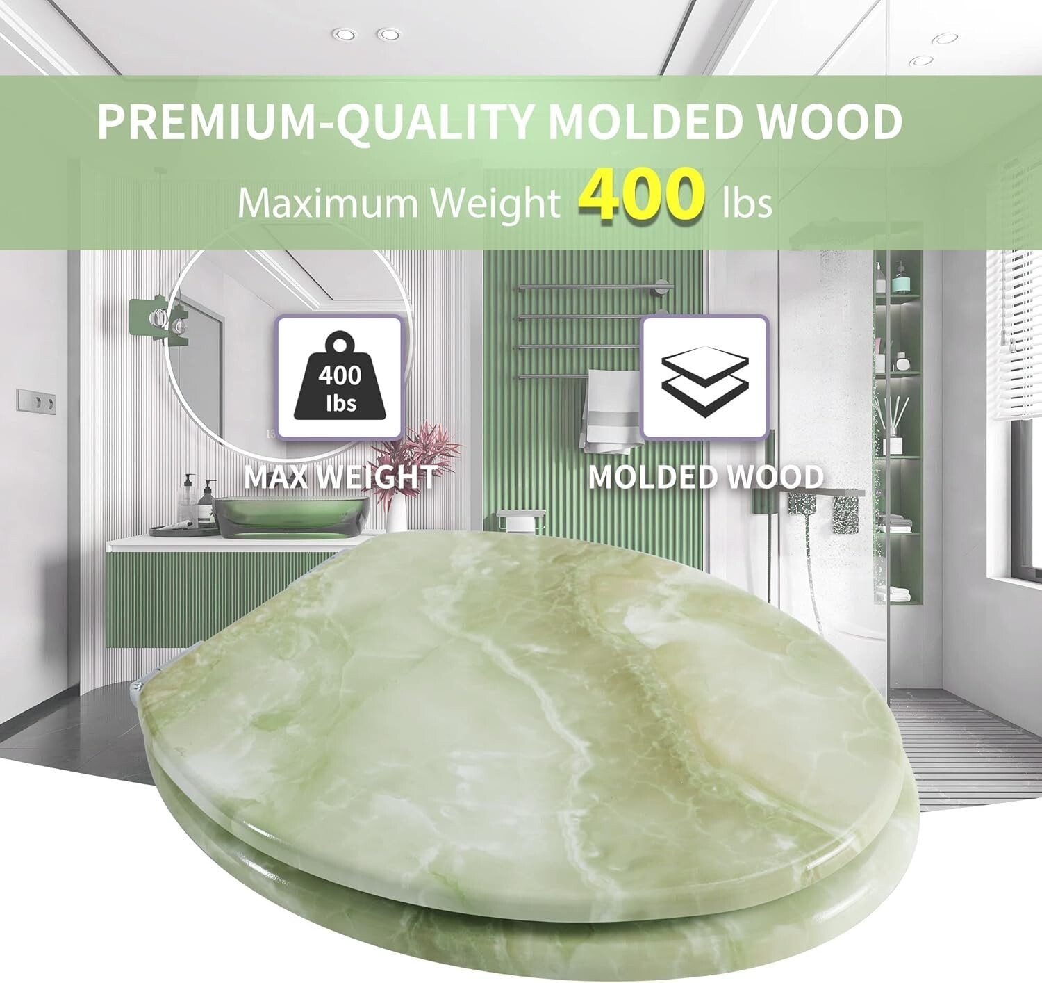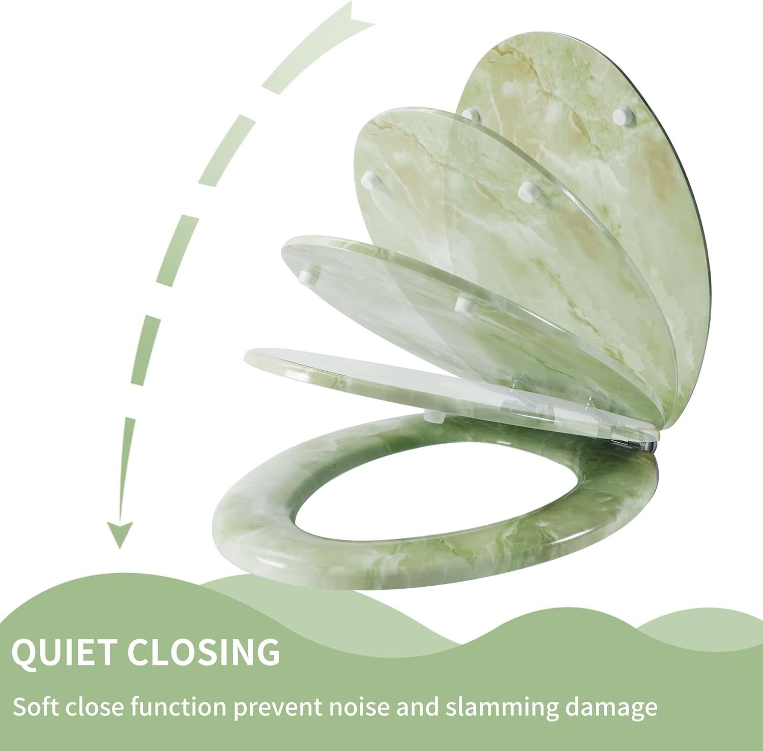 - Modern Molded Wood Toilet Seat in Green Marble - Quick Installation & Easy Care