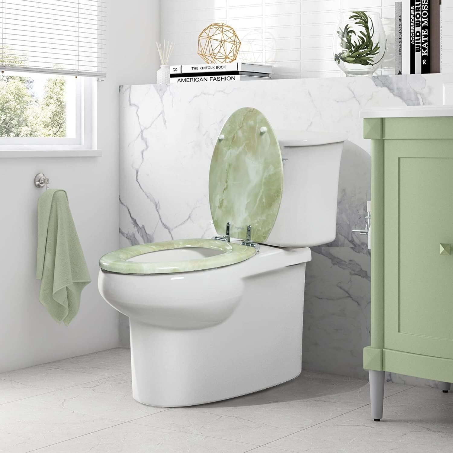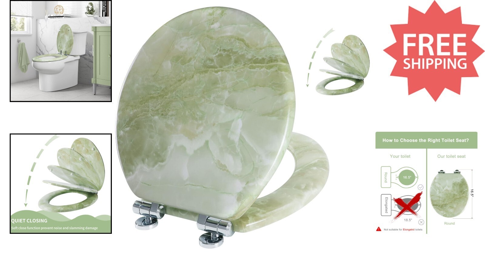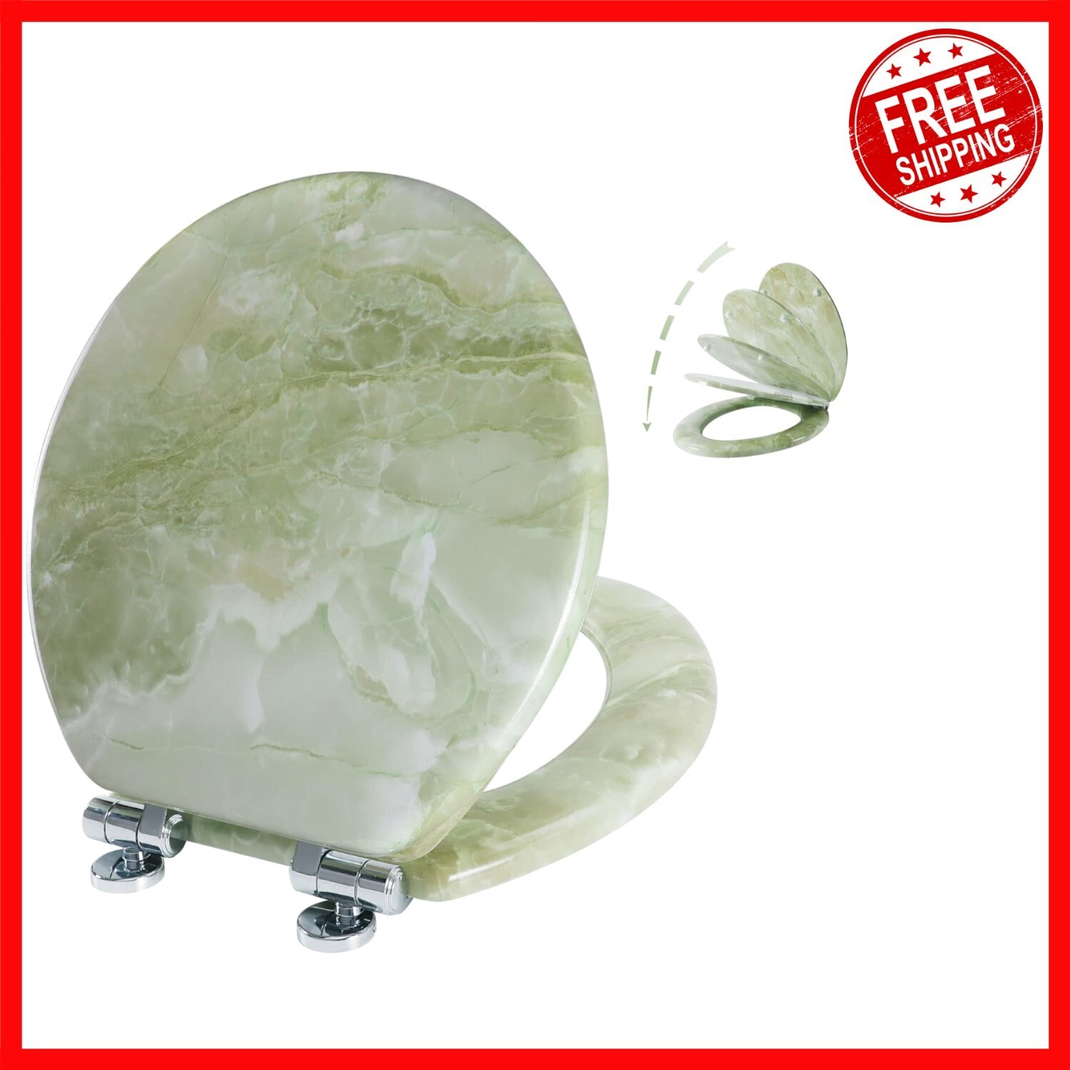 - Modern Molded Wood Toilet Seat in Green Marble - Quick Installation & Easy Care