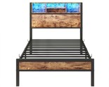 - Modern Twin Metal Platform Bed Frame w/Storage Headboard & USB Charging