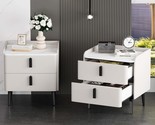 Modern White Nightstands Set of 2 with 2 Drawers & Marble Top