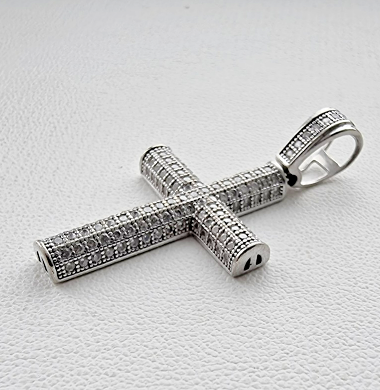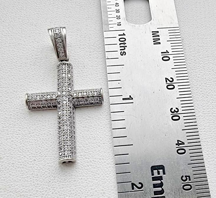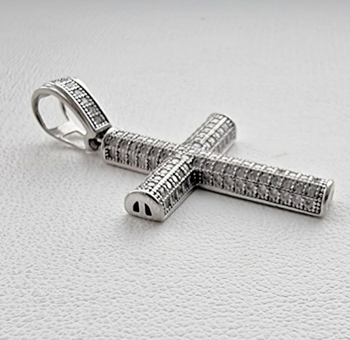 - MODERNIST 925 STERLING SILVER MICRO PAVE CZ TUBE CROSS PENDANT