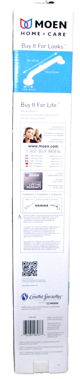 New Moen LR8918W Home Care 18" Grab Bar in Glacier White with Concealed Flanges and Secure Mounting. Sold with free shipping.