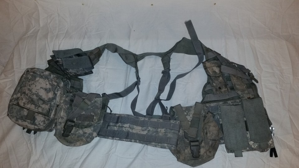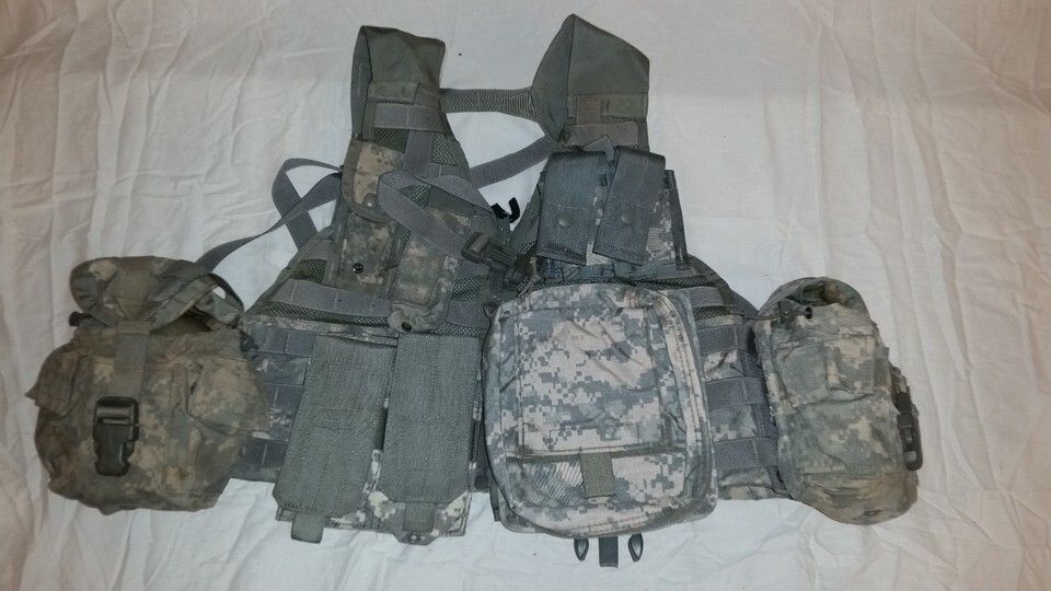 - MOLLE II ACU FLC TACTICAL FIGHTING LOAD CARRIER VEST CHEST RIG & POUCHES 1023